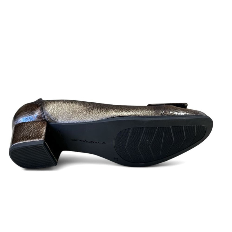 Zapato nueva temporada primavera tipo salón con cuña muy cómoda de la marca Pitillos. Fabricado en piel de vacuno con efecto brillo, detalles en casi todo el corte metálicos. Modelo mas ancho. Suela tipo cuña media con plataforma para que nos resulte mas cómoda la pisada. Detalle de ribete pintado oro en el filo del zapato. Ajuste mediante ribete elástico en el contorno del corte, favoreciendo el ajuste. Plantilla acolchada extraíble. Calce de talla habitual y se adapta a juanetes. Cualquier duda llámenos.