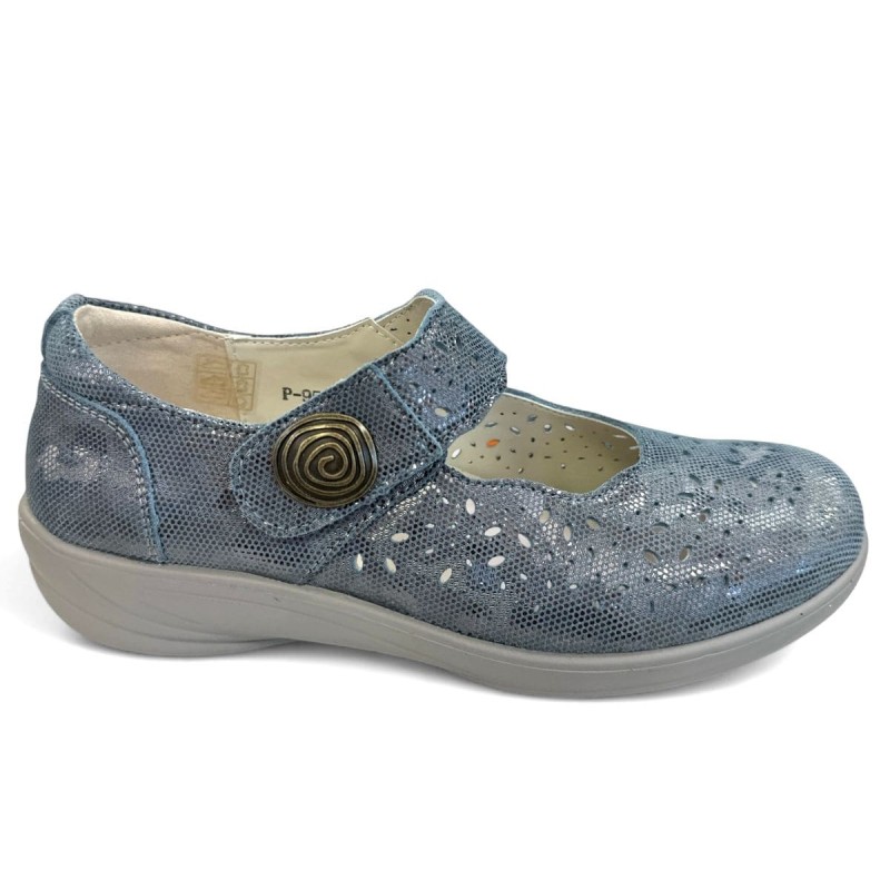 Zapato para pie delicado que necesita alta capacidad en dedos y empeine. Marca nacional Doctor Cutillas. Fabricado en tejidos técnicos charol y licras estampadas muy suaves. Suela muy ligera y cómoda con una pequeña cuña. Plantilla extraíble acolchada con posibilidad de poner ortopédica. Aconsejamos medir su plantilla y ponerse en contacto con nosotros y le ayudaremos. El calce del zapato es grande, calza mas o menos una talla mas que en un calzado normal, si tiene dudas le damos las medidas del calzado. Sistema de cierre con velcro de alta capacidad.
