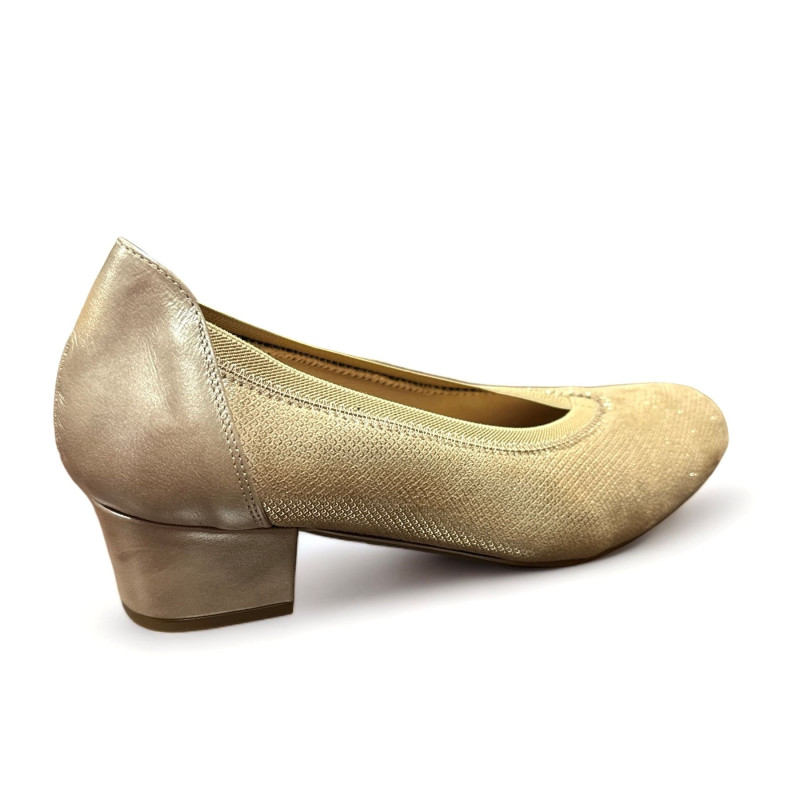 Zapato nueva temporada primavera tipo salón con cuña muy cómoda de la marca Pitillos. Fabricado en piel de vacuno con efecto brillo, detalles en casi todo el corte metálicos. Modelo mas ancho. Suela tipo cuña media con plataforma para que nos resulte mas cómoda la pisada. Detalle de ribete pintado oro en el filo del zapato. Ajuste mediante ribete elástico en el contorno del corte, favoreciendo el ajuste. Plantilla acolchada extraíble. Calce de talla habitual y se adapta a juanetes. Cualquier duda llámenos.