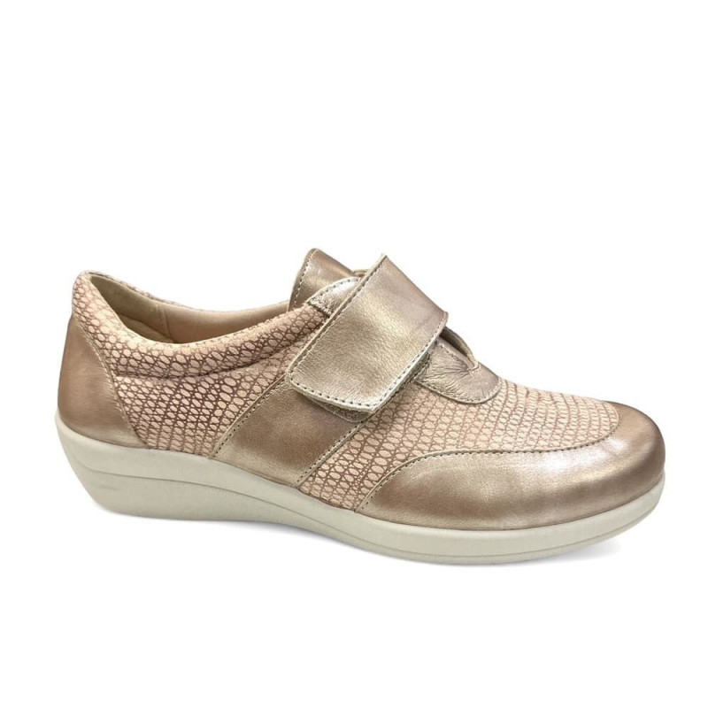 Zapato casual ANCHO ESPECIAL de la marca Riojana NOTTON. Fabricado en tres tipos de piel de vacuno muy flexible con tonos grises o burdeos. Dos pares de plantillas extraíbles para ajustar dependiendo de nuestras necesidades. Calce ancho y largo normal. Ajuste mediante velcro. Diseñado para pies delicados, en diferentes tipos de piel lisa, acharolada con grabado en color negro y burdeos. Forro textil térmico antibacteriano. Suela de caucho natural con media cuña cómoda Ancho especia.