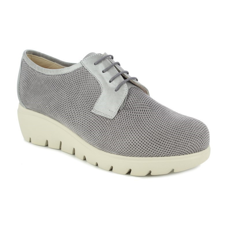 La marca perfecta para mujeres modernas con pies delicados, marca internacional mas vendida por tiendas especializadas con ansertienda.com. Si necesitas un zapato deportivo fresco para todos los días y que parezca que no es ortopédico, este es tu modelo. Fabricado con las mejores pieles alemanas de Yak tipo napa les ofrecemos adentrarse en un mundo de zapatos cómodos y muy monos. Cuidaran de sus pies en la máxima expresión. ¿Qué tiene? Suavidad en sus materiales, todos su forros en el interior son de piel muy suaves, mezcla de piel blanca calada que se adapta al pie con gris metal suave. Lo recomendamos en especial para pies con juanetes debido porque en esa zona no dejan libre de costuras. La plantilla es de piel con posibilidad de extraerla para poner una ortopédica. Estos modelos contienen unas paredes laterales mas altas para soportar el calce de dichas plantillas. Te las calzaras rápidamente con sus cordones bien ajustados al empeine y mas tarde con su cremallera lateral podrá bajarla y subirla sin necesidad de desabrochar cordones. Suela super ligera con una pequeña cuña muy estable, ira en el cielo. Calce de talla amplia, horma 16, si esta entre dos tallas elija la menor o nos puede consultar.