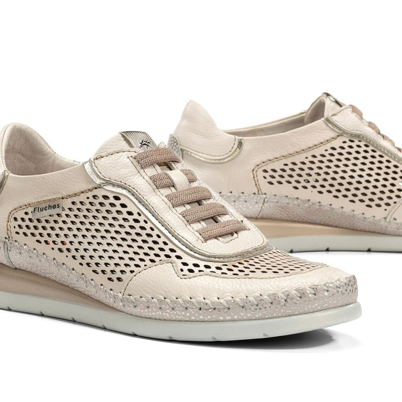 Zapato tipo deportivo para mujer ancho especial de la marca riojana Pitillos sin costuras. Fabricado en combinación de piel nobuk suave grabada y calada en la pala con detalles en oro brillo, parte trasera lisa. Calce donde podemos recoger todo el piel y ajustarlo mediante un velcro en el empeine, opción de quitar la plantilla y poner otra. La pala es una sola pieza sin costuras lo que lo hace ideal para esos dedos delicados. Calce ancho especial, se adapta muy bien al pie y juanete. Suela muy ligera, antideslizante dando seguridad en cada paso. Calce de talla normalmente el habitual. Hecho en La Rioja. Comodidad para esta primavera.