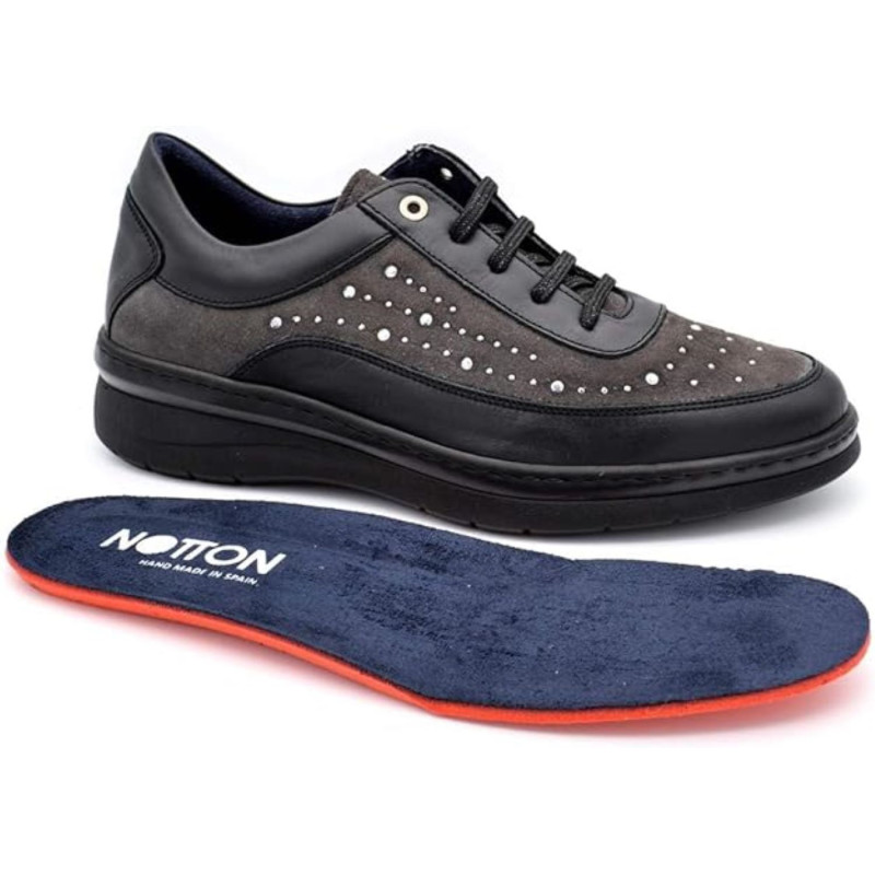 Zapato sport moderno Girona en negro de la marca Pikolinos para mujer. Alta calidad y modernidad en tus pies dias todo el dia. Mejores es imposible, este modelo lo tiene todo. En color negro, con detalles de tachas dándole un toque moderno. Suela ligera con una cuña cómoda y base delantera. Sistema de cierre con cordones. Plantillas extraíbles con acolchado Memory Foam. Piel de vacuno de alta calidad. Tallas normalmente tu talla habitual. También en crudo.