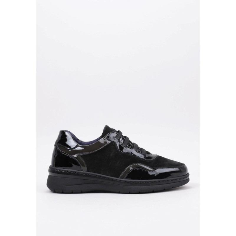 Zapato sport Ancho especial fabricado en La Rioja. Confeccionado en piel charol y lo mas importante lycra de invierno que se adapta a juanetes o a la a anchura del piel sin dolor. Detalles en la pala lo que le dan un aspecto mas moderno dentro de un calzado confort. Los zapatos mas cómodos para el día a día. Sistema de cierre velcro muy duradero. Suela muy ligera y gordita aislante del frio totalmente antideslizante. En el interior recibirá dos pares de plantillas para adaptarlo mejor a su horma. Calce talla habitual. Plantilla transpirable extraíble. Hecho en España.