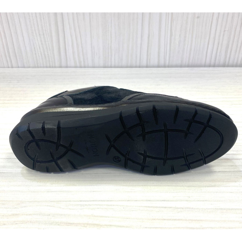 Modelo de zapato ideal para mujeres que necesitan ir muy cómodas en invierno a la vez que sienten sus pies protegidos por zapatos diseñados por grandes profesionales. Este modelo está pensado en los días de otoño invierno ya que contiene una membrana interior que te protege de dias lluvioso y frío. Además tiene una anchura ideal para pies anchos y delicados. Fabricado en piel natural napa negra y nobuck con un pequeño toque de brillo. Calce de talla suele dar talla recomendamos elegir la habitual y si tiene dudas consultenos. Plantilla extraible acolchada. Lo tiene de las tallas 36 al 42. También en negro.
