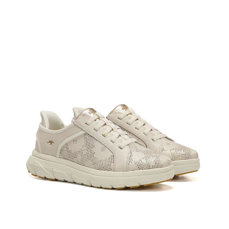 Zapato tipo deportivo para mujer de la marca riojana Pitillos. Fabricado con combinación de piel napa crema, piel napa metal oro y tejido crema transpirable. Calce donde podemos recoger todo el piel y ajustarlo mediante un velcro en el empeine, opción de quitar la plantilla y poner otra. Calce ancho especial, se adapta muy bien al pi. Suela muy ligera, antideslizante dando seguridad en cada paso. Calce de talla normalmente el habitual. Hecho en La Rioja. Comodidad para esta primavera.