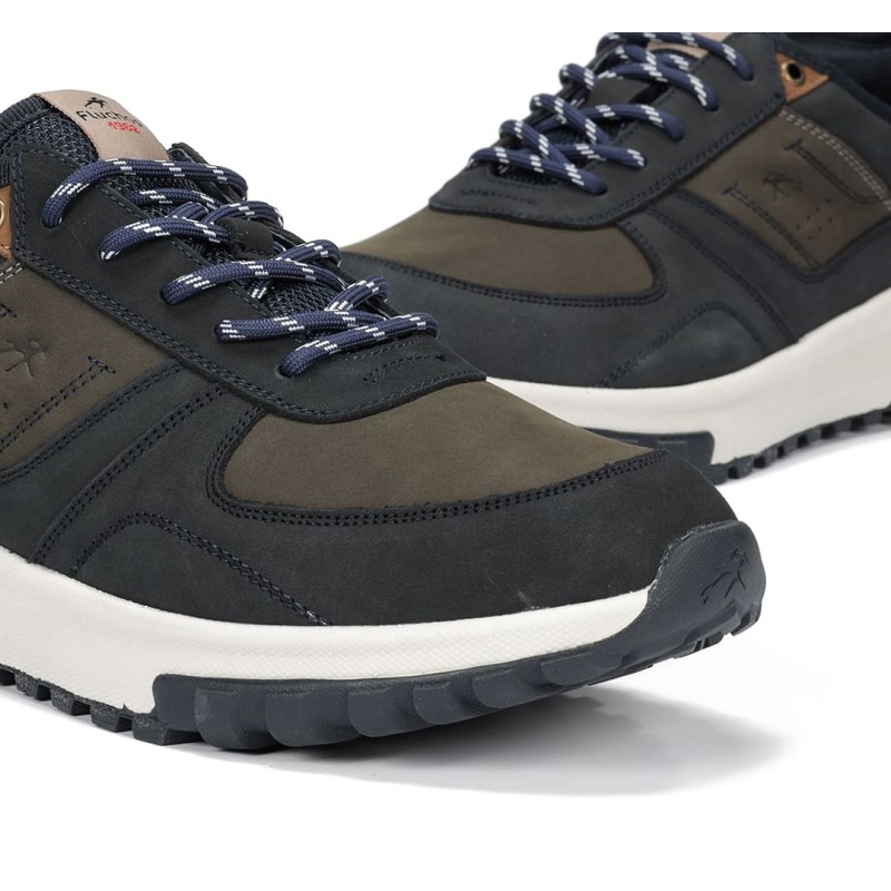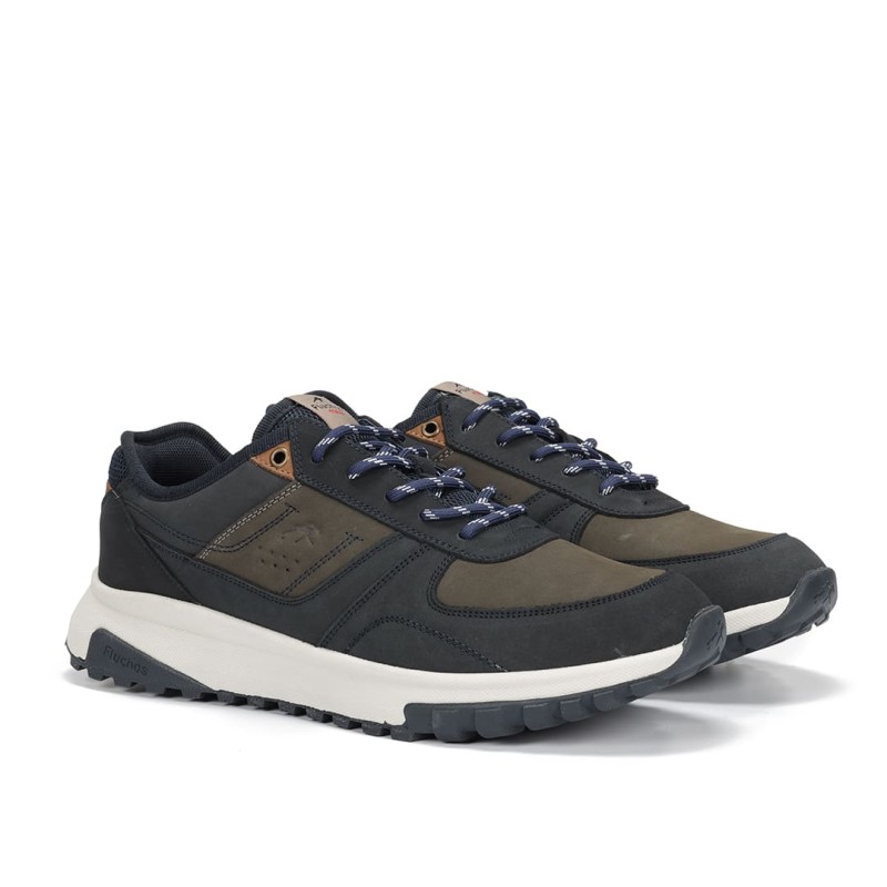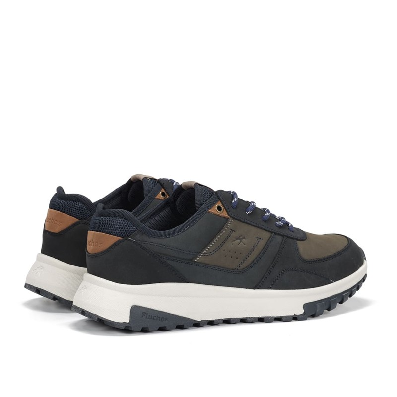Zapato tipo sport de la marca Riojana Fluchos, con detalles que le dan una gran personalidad. Fabricado con piel de vacuno grabada y piel nobuck de gran calidad, se adapta al pie con facilidad. Suela de caucho natural antideslizante y tecnología DINERGY: Un prodigio de la ingeniería mas avanzada aplicada a suelas de alto rendimiento. El secreto del confort esta en la correcta distribución de las presiones que realiza el sistema de estas suelas. Ideal para tus looks mas abrigados. Un modelo realmente cómodo. Cierre cordón. Limpiar con spray incoloro y cepillo. Plantilla extraíble. Calce normal amplio. HECHO EN ESPAÑA. El color marino piel nobuk, color marrón piel napa.