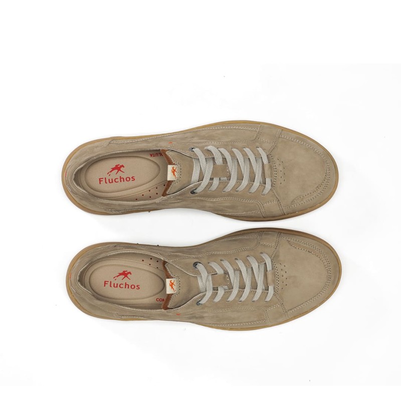Zapato con cordones CELTIC FLUCHOS de continuidad super cómodo y ligero para el día a día. Fabricado con piel de primera calidad. Los diferentes tonos en su color se deben a su autenticidad en la piel de vacuno. La suela de EVA EXTRA LIGERA le aporta comodidad absoluta. Con tecnología AIR y ABSORBER que minimiza el impacto en la pisada. Calce normal. HECHO EN ESPAÑA.
