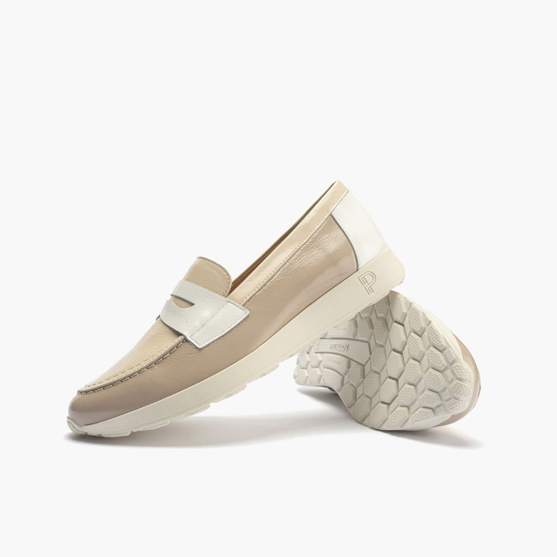Zapato mocasín para mujer con pies delicados, perfectos para el día a día esta primavera. Fabricado por la marca nacional Pitillos. Material de piel de napa beige lisa con adorno antifaz liso y detalles dorados finitos en la piel grabada del contorno. La pala le da un toque fresco muy bonito. Tejido transpirable en el interior. Plantilla extraible. Suela muy ligera y con buen calce. Recomendamos crema incolora. Calce de talla habitual. Hecho en La Rioja.
