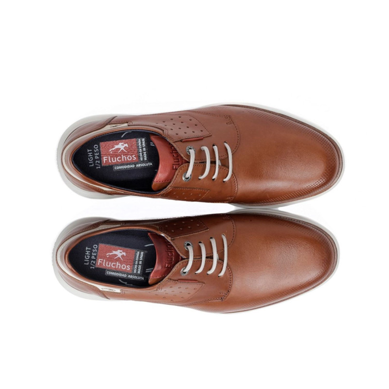 Zapato de corte mocasín de la firma Fluchos con detalle de antifaz, que le aporta un toque más actual al clásico mocasín. Fabricado en piel de primera calidad forrado solo en zona para evitar rozaduras. Piso light (peso pluma) con camara de aire. Fabricado en España. Calce habitual, para pie normal.